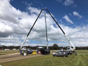 Cranes Combined – celebrating 20 years in partnership with Carrick Speedway had three cranes on display at the main entrance yesterday and created a wonderful sight.