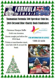 Tickets will be for sale at the merchandise shop, I will be near the kids club & also hope to walk around the bank, also hoping to have someone sell tickets in the pits!!! Chocolates, bubbly, fruit mince pies, xmas pudding & a $50 coles myer voucher…well worth entering.