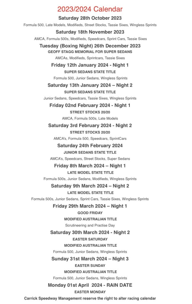 • Calendar Tasmanian Speedway Events