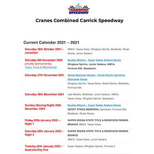 Download Carrick Speedway Calendar (Draft) for season 2021/2022