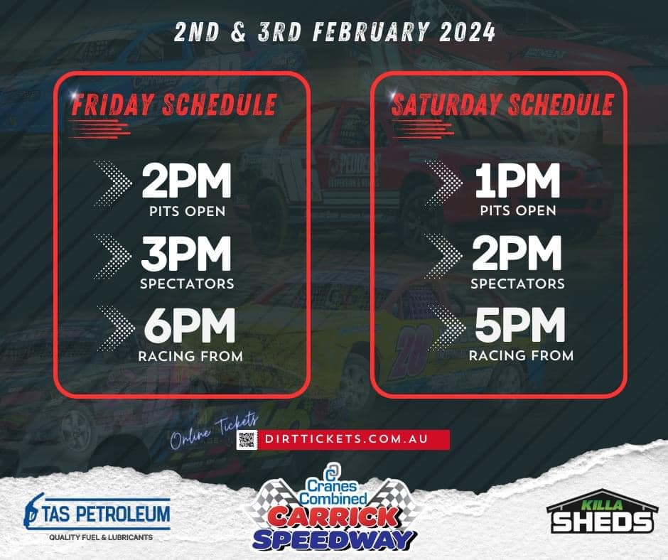 This Friday and Saturday nights racing proudly sponsored by Tas Petroleum including the Killa Sheds Street Stock 20/20 EVENT INFO DIVISIONS SCHEDULED Night 1 – Friday 2nd February 2024 Street Stocks (Killa Sheds Street Stock Read More …