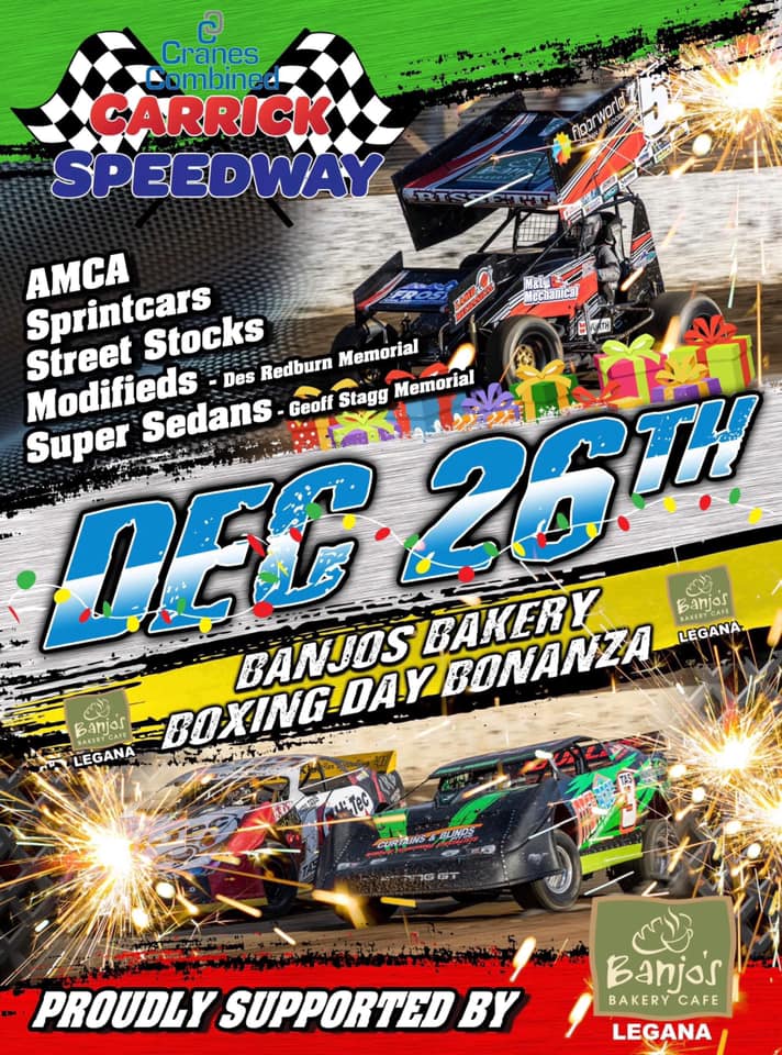 OUR BIGGEST NIGHT OF THE SEASON! Like and share to win a family pass on Carrick Speedway Face Book!! Carrick Speedway Facebook Cranes Combined Boxing Day Blitz! – Tuesday 26th December 2023 WHATS ON? Sprintcars Read More …