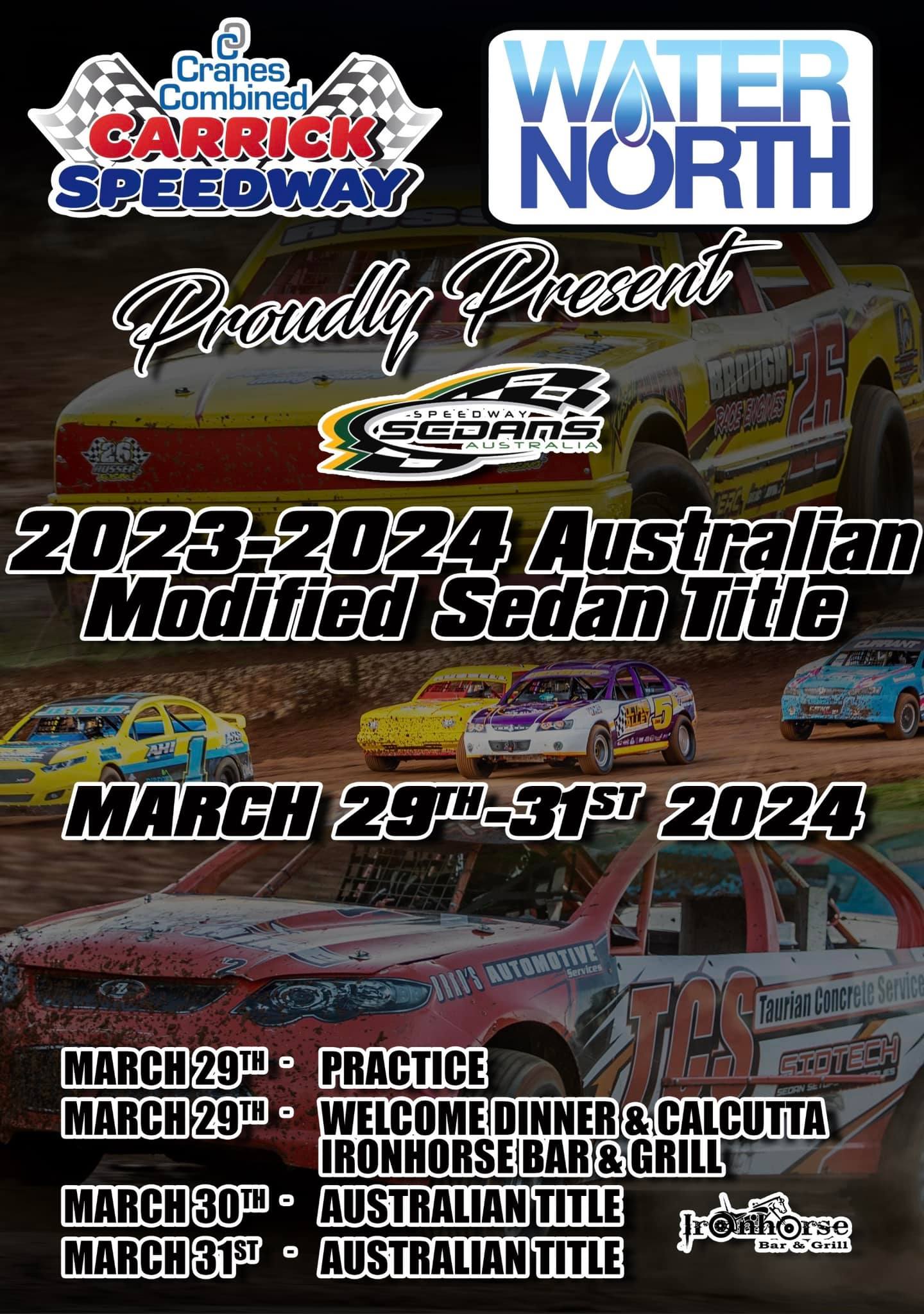 The countdown is on to the Speedway Sedans Australia 23/24 Australian Modified Sedan Title proudly presented by Water North March 29th – Good FridayPractice followed by a welcome dinner and Calcutta at ironhorse Bar & GrillMarch 30-31st – Read More …