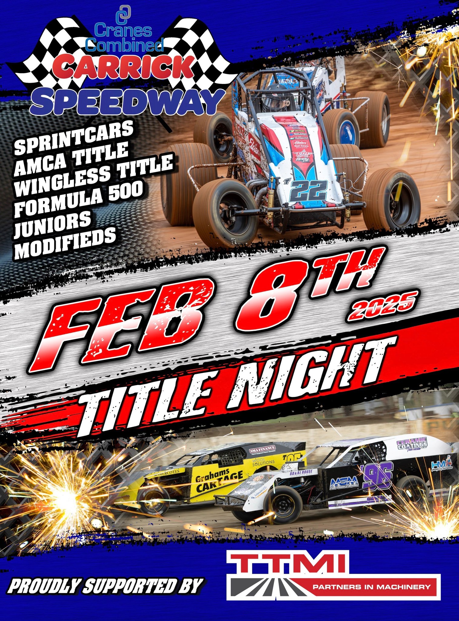 TONIGHT! TTMI Title Night. TTMI Partners in Machinery TTMI Title Showdown | AMCA + Wingless State Title AMCA (State Title), Wingless Sprints (State Title), Formula 500, Juniors, Modifieds, Sprintcars EVENT DETAILS ———————————————– Saturday 8th February Read More …