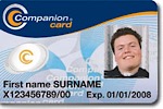 With a COMPANION CARD the holder of the concession card pays entry and the Companion is entitled to free entry so long as card is shown.