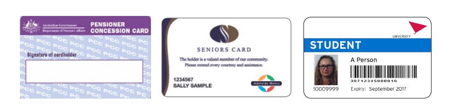 The BLUE pension card, SENIORS CARD, and STUDENT CARD allows you entry at the Concession price, the card must be shown to be given entry. NO CARD NO ENTRY AT THE CONCESSION PRICE.