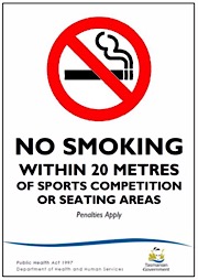 As the signage states, there is no smoking within 20 metres of the competition area which in our case is the track and also within 20 metres of seating area – spectators.