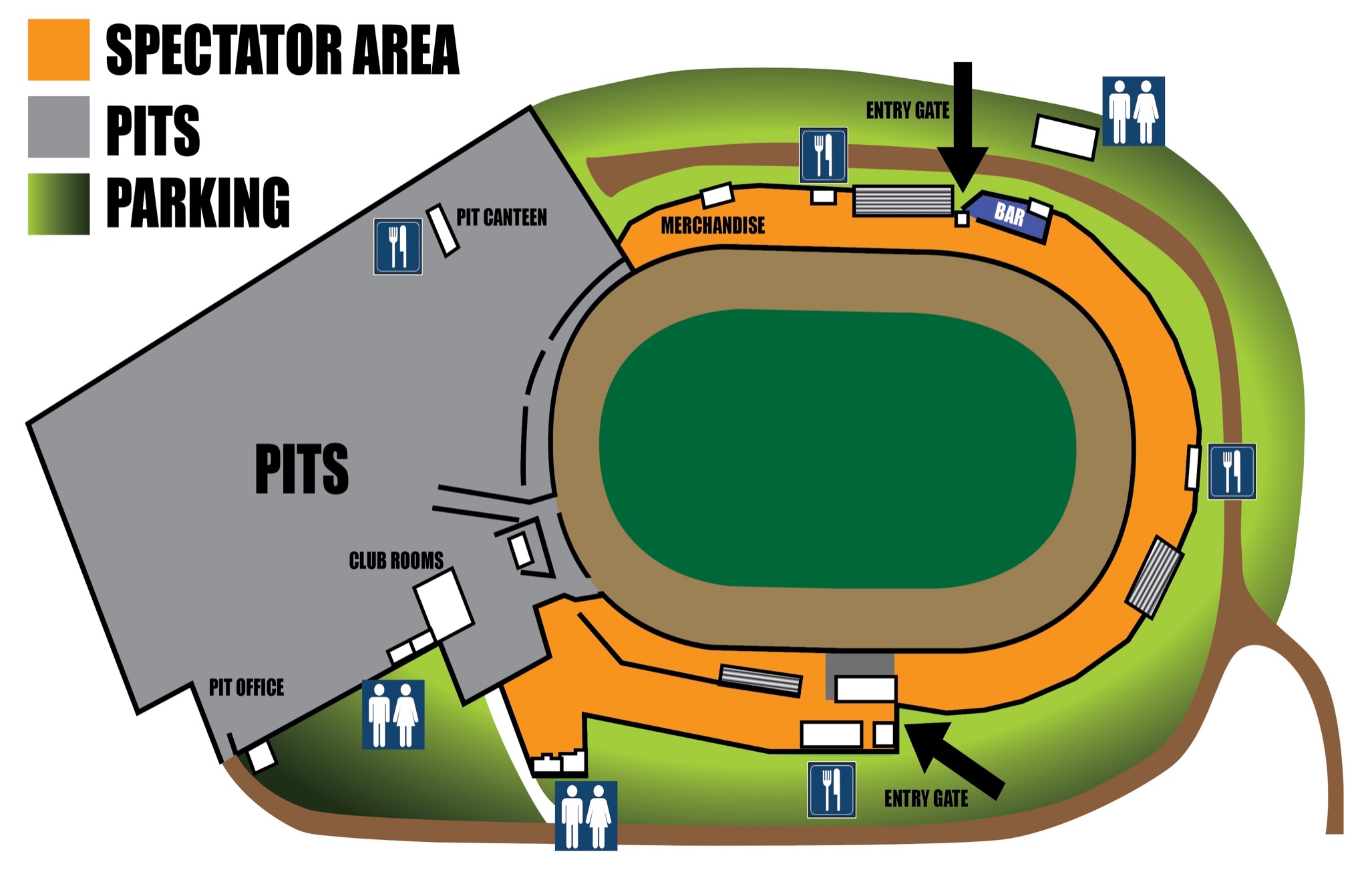 Vehicles are permitted to enter and park on the condition that the owners and occupiers of the facility are not under any liability whether contract or in tort and whether for negligence or as an occupier or on any other basis or for any cause of action for loss of or damage to, the vehicle or its contents no matter how or where such may be cause.Tickets are online or available at the front General Admission gates on race nights. EFTPOS facilities are available at the gate.